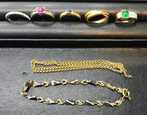 特に金やプラチナのアクセサリー、ダイヤモンドや色石の付いたジュエリー製品、